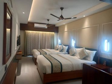 Spacious family suite with multiple beds, AC, TV, Wi-Fi and attached bathroom. Ideal for family stays with comfort and privacy.
