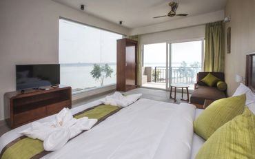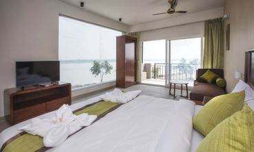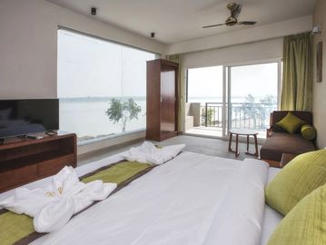 Premium sea view room with AC, TV, Wi-Fi and attached bathroom. Perfect for couples & families to enjoy a relaxing beach stay.